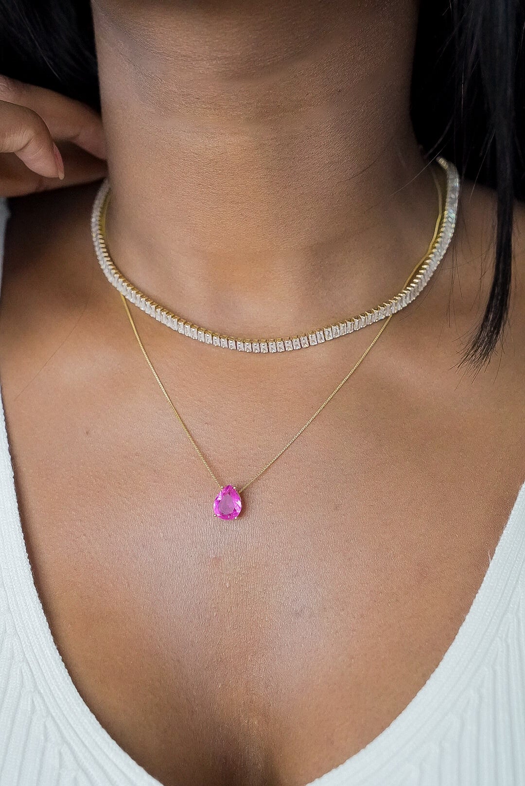 Colar gota rosa pink