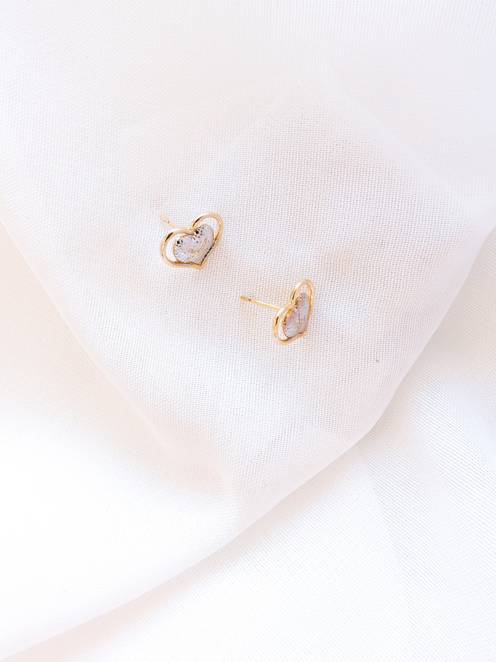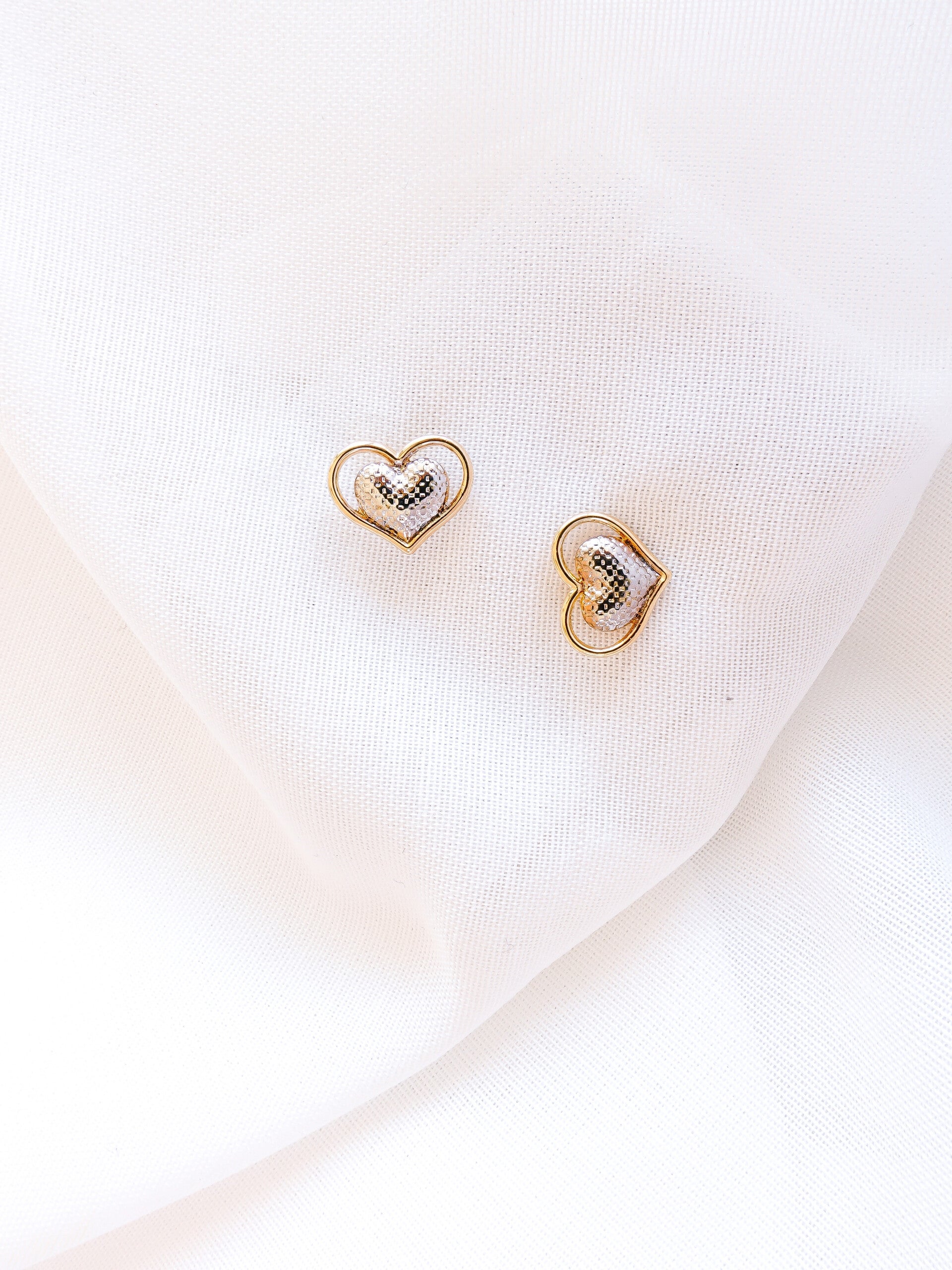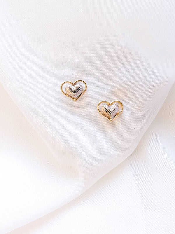 Brinco de coração prata e dourado