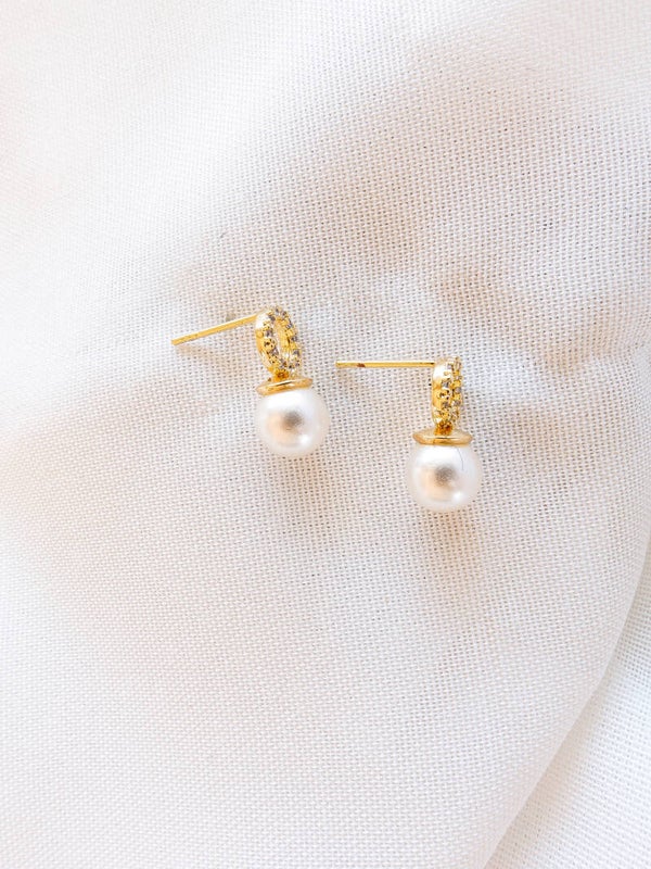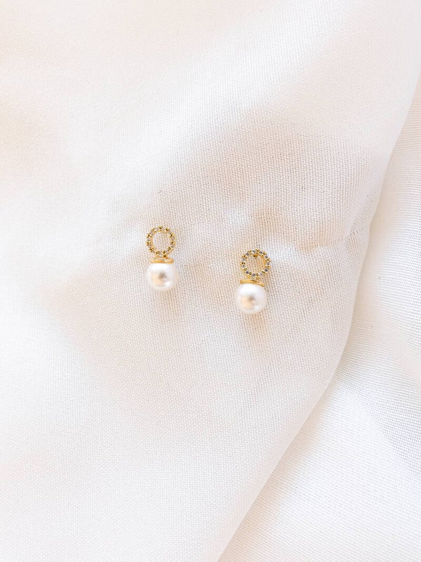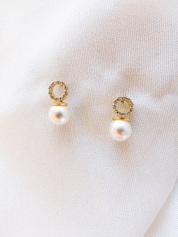 Brinco pérola e micro zircônias
